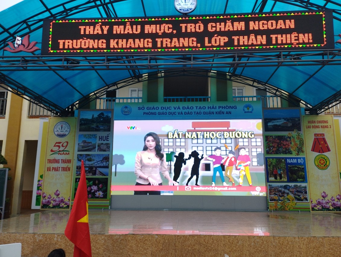 Ngoài ra, trong buổi chào cờ lần này, nhà trường đã phát động tuyên truyền: " Phòng chống bạo lực học đường". Có thể nói, bạo lực học đường luôn là vấn đề nhức nhối trong môi trường sư phạm, đây cũng là dịp để cho các em học sinh rèn luyện ý thức đấu tranh đẩy lùi bạo lực học đường ra khỏi ngôi trường THCS Đồng Hoà.