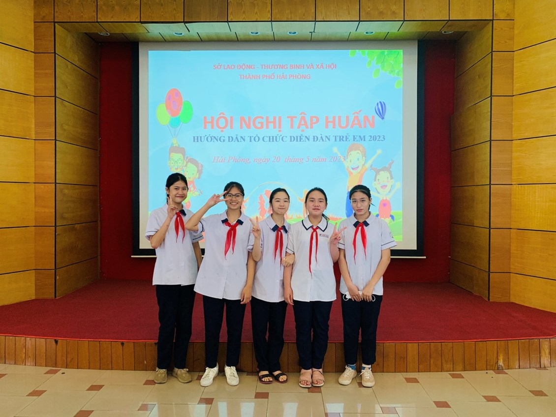 5 bạn học sinh đại diện của trường THCS Đồng Hoà tham gia hội nghị