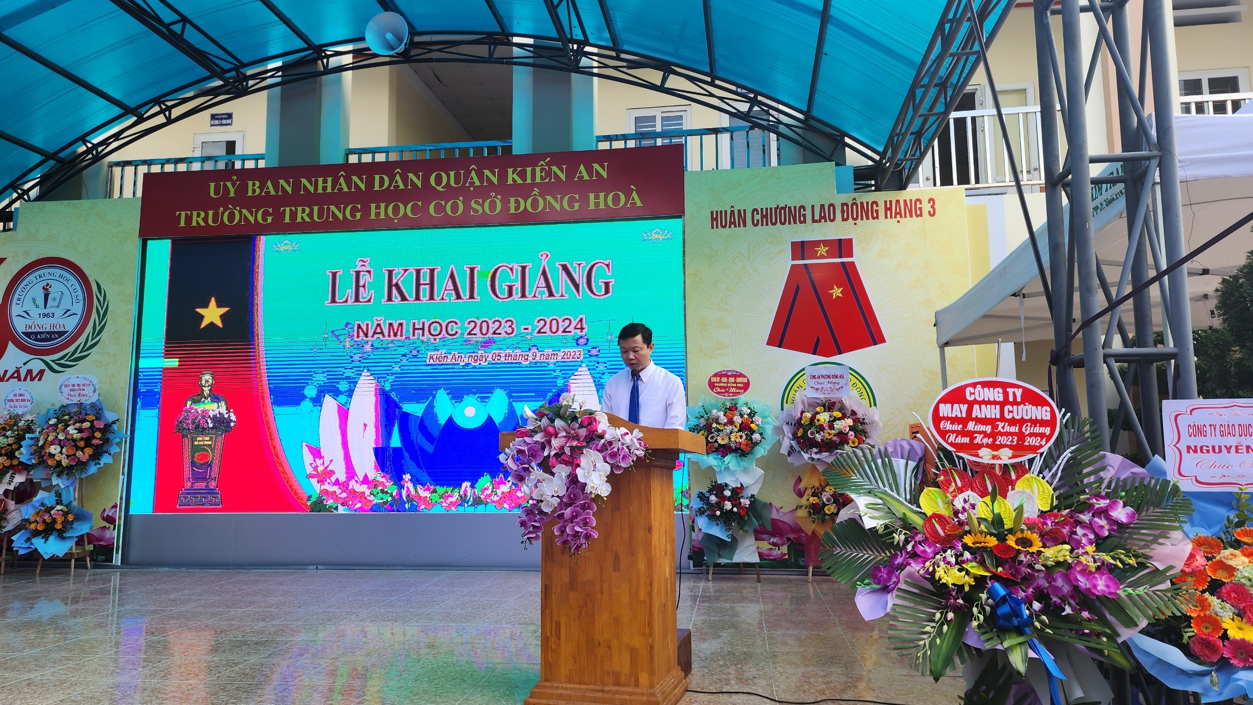 Cùng các đồng chí lãnh đạo Quận uỷ - HĐND- UBND - UBMTTQVN quận Kiến An; các đồng chí lãnh đạo, cán bộ, chuyên viên Phòng Giáo dục và Đào tạo Kiến An; đại biểu đại diện cho Đảng uỷ, UBND - HĐND - UBMTTQ Việt Nam phường Đồng Hoà và các bậc Phụ huynh đại diện CMHS các khối lớp.