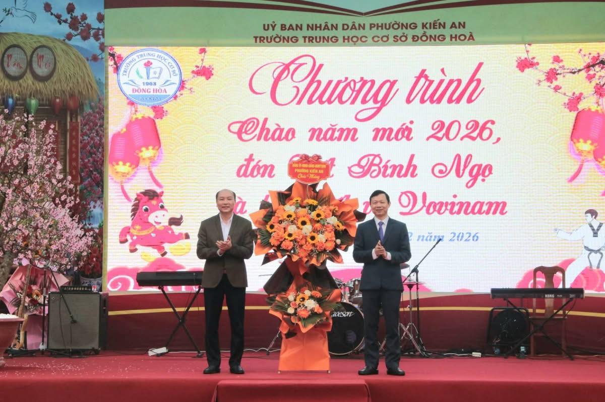 Tới dự chương trình có các đồng chí: Nguyễn Thiện Kim, Phó Bí thư Thường trực Đảng ủy phường Kiến An; Nguyễn Tiến Thọ, Phó Chủ tịch HĐND phường Kiến An; đại diện các phòng, ban, tổ chức chính trị phường; Ban Giám hiệu, các thầy cô giáo trong Hội đồng sư phạm Nhà trường; Ban Đại diện Cha mẹ học sinh Nhà trường cùng gần 1.500 em học sinh trong toàn trường.